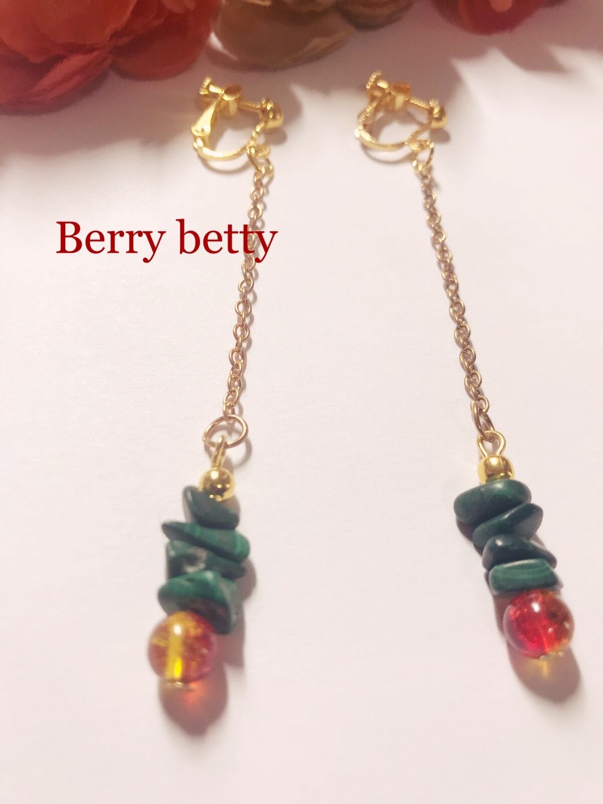世界三大ヒーリングストーンマラカイトを使用したロングピアスです。