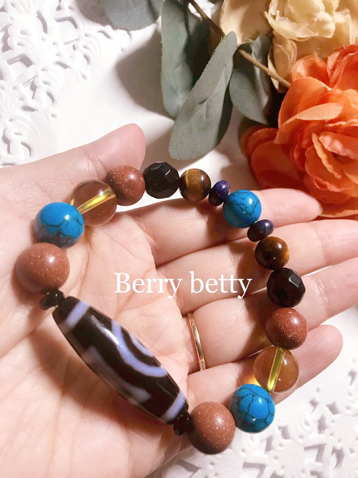 一眼天地天珠&ターコイズの天地神の御加護金運UPパワーストーンブレス