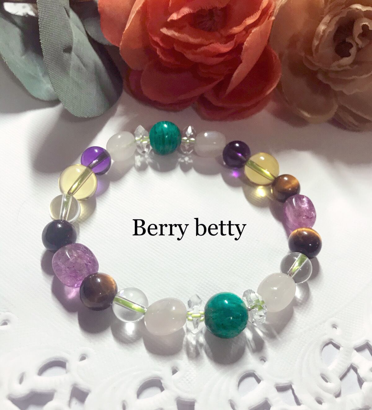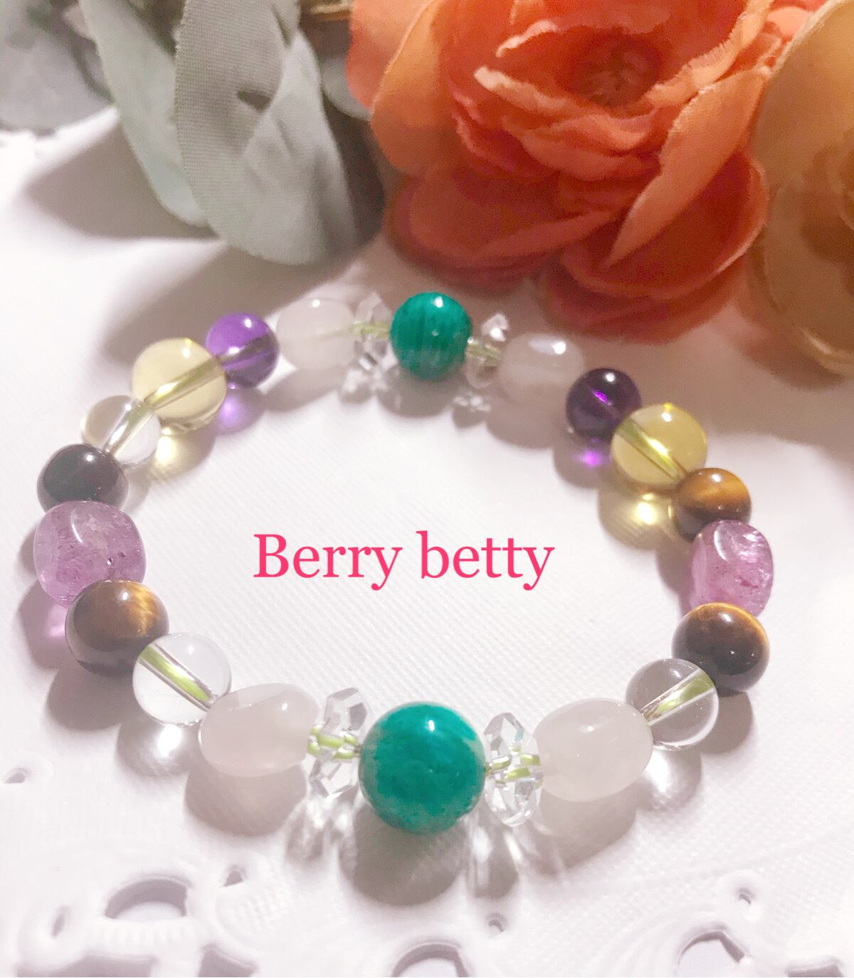 上質なアマゾナイトをメインに、女性らしい透明感のある世界に一つのオンリーワンブレスを繋げました。