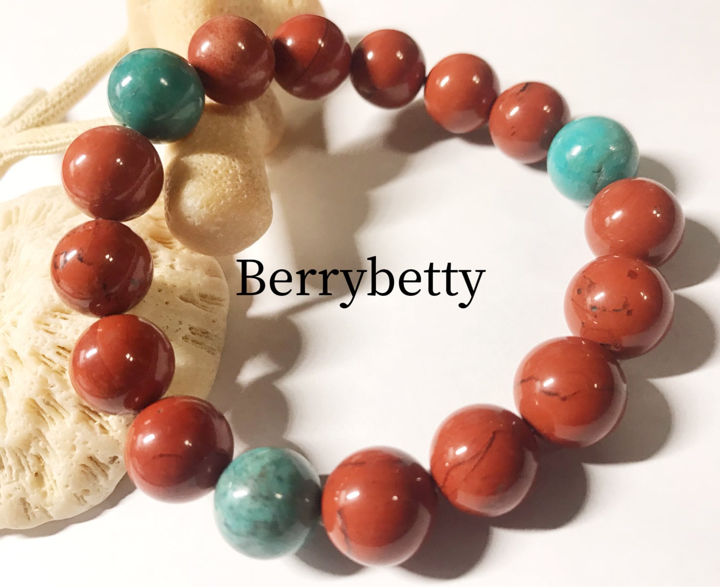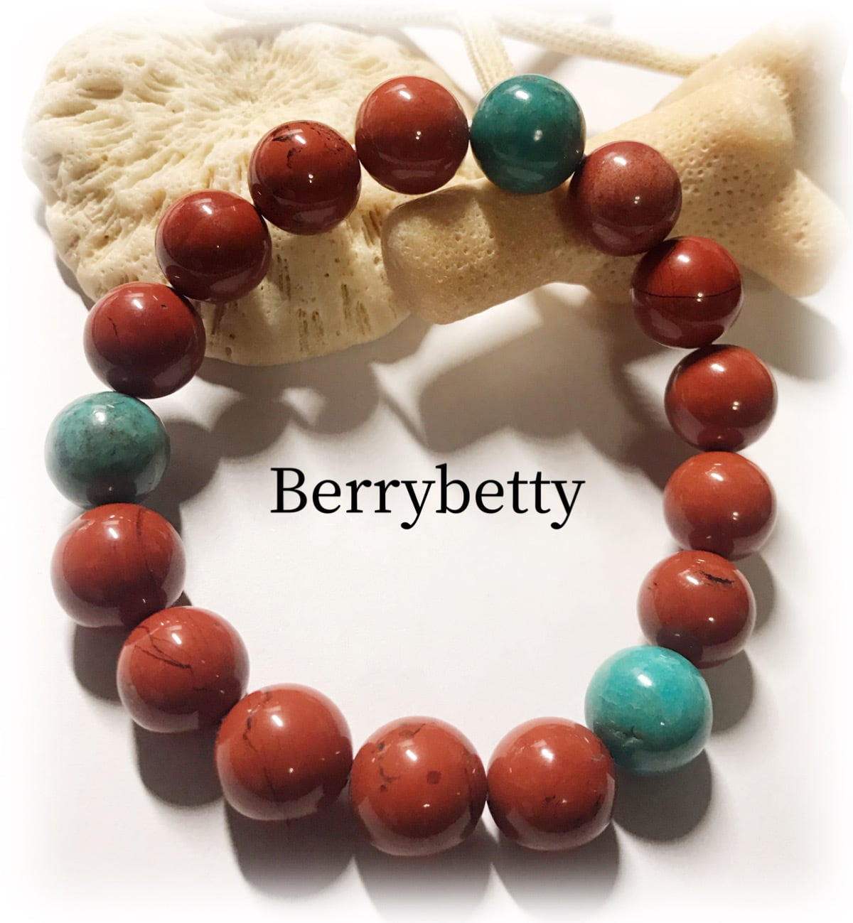 上質ターコイズ原石とレッドジャスパーを贅沢に並べたパワーストーンブレスです。
