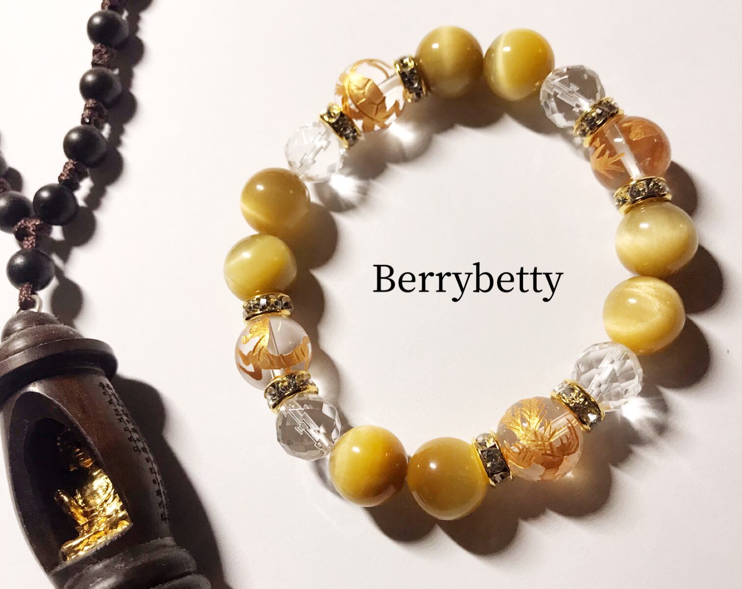 ゴールデンタイガーアイと四神の金運財運アップ大ぶりブレス