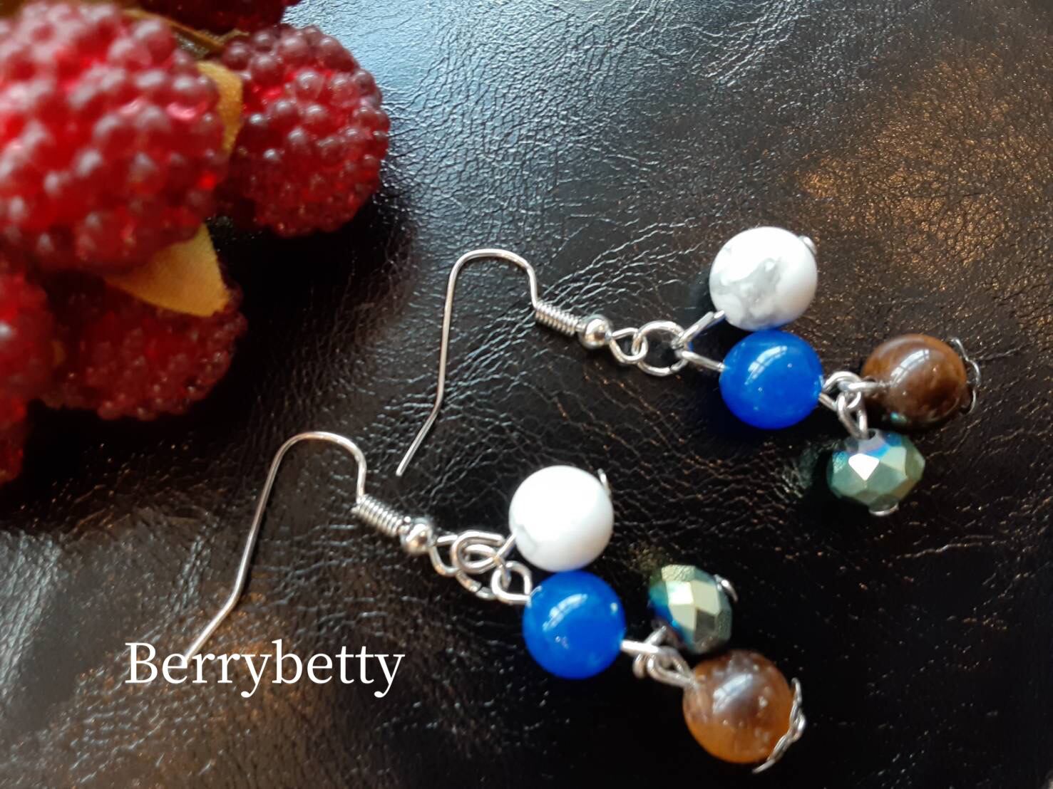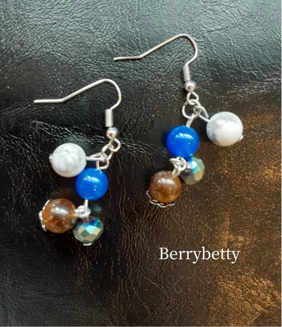 魔除け厄除け効果のタイガーアイ、ハウライトの動きのある使い勝手の良いピアスです。