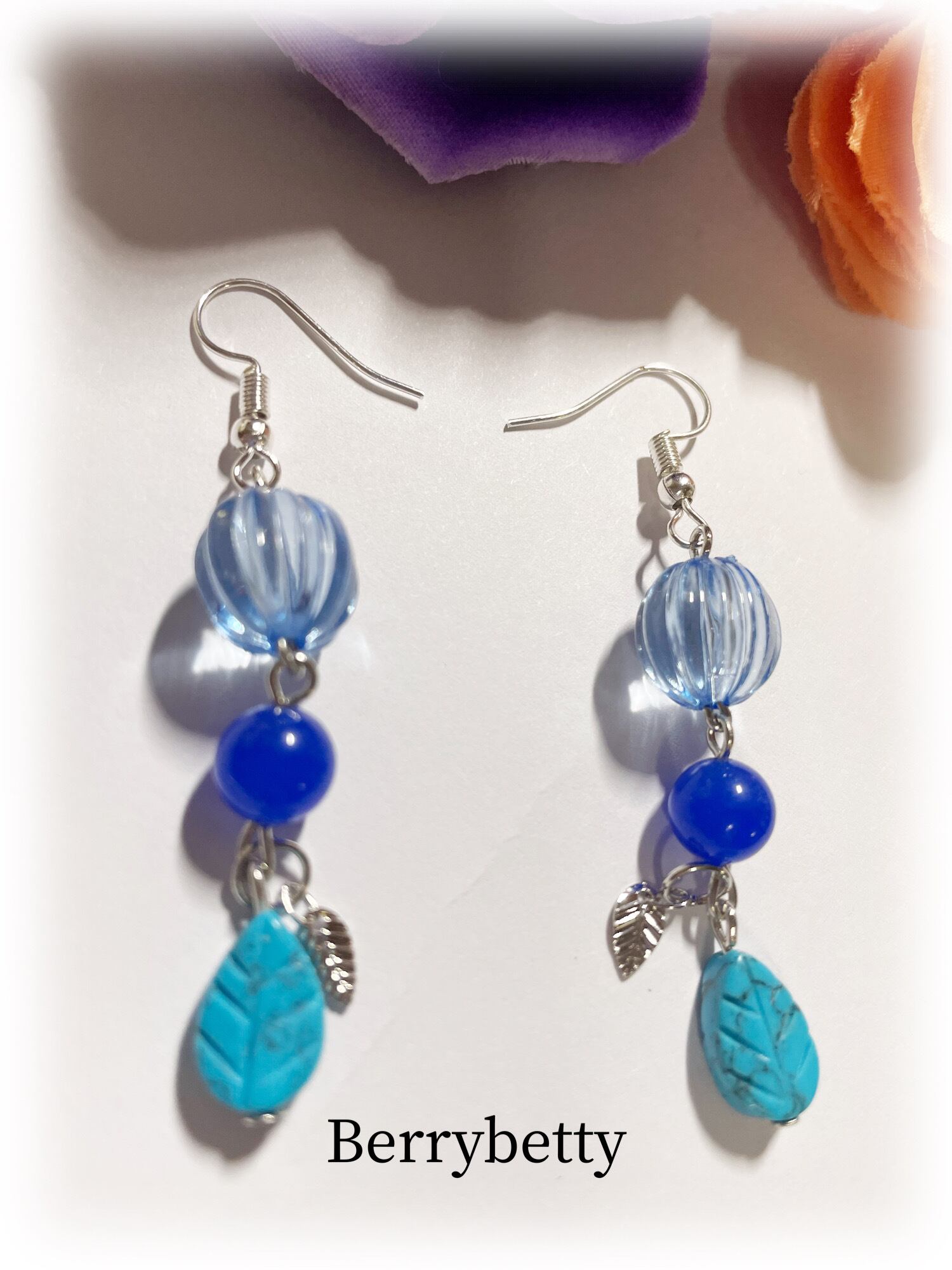 ブルー瑪瑙とターコイズ、ガラス玉のようなビーズを使った沖縄の空と海をイメージしたピアスです。